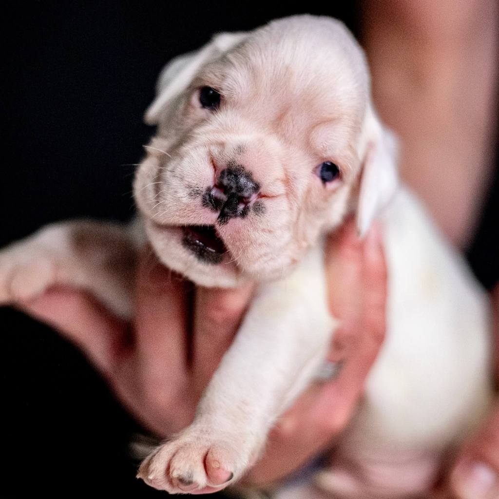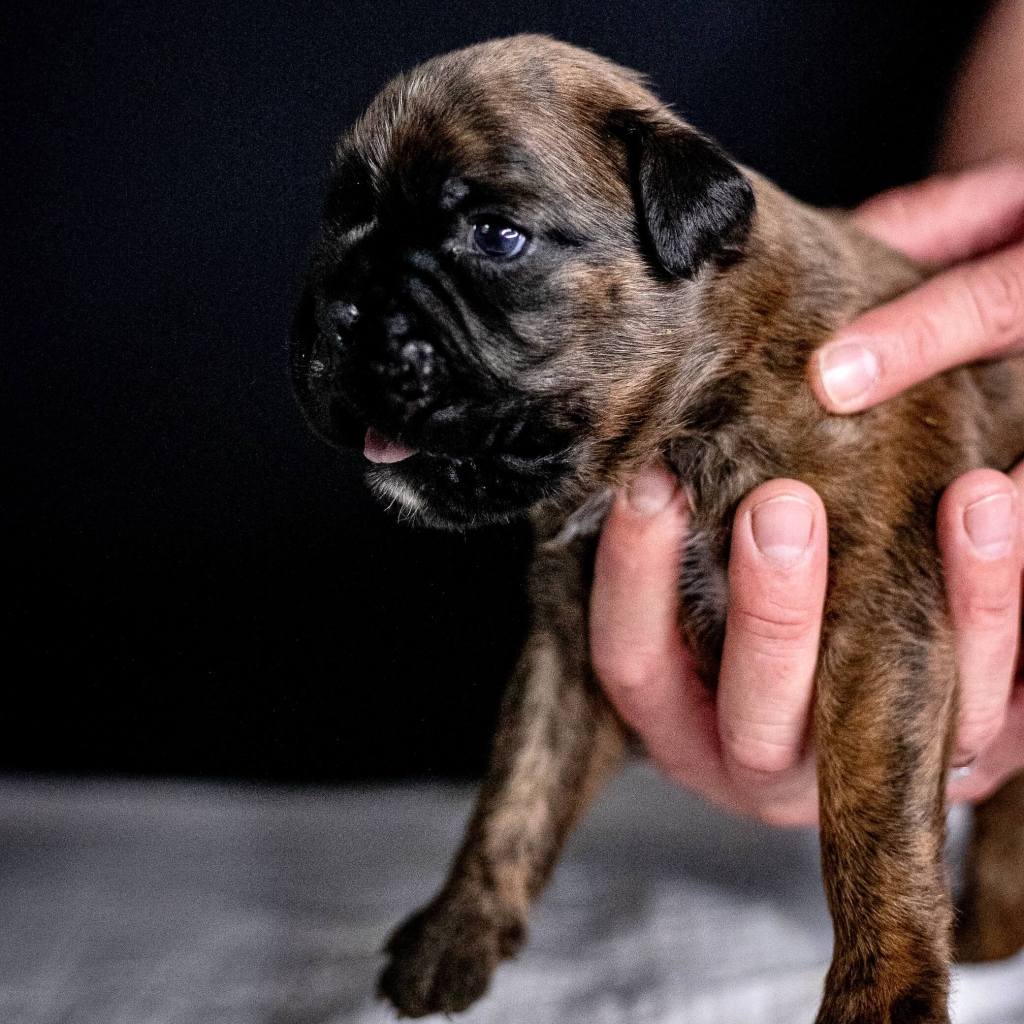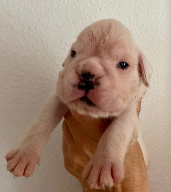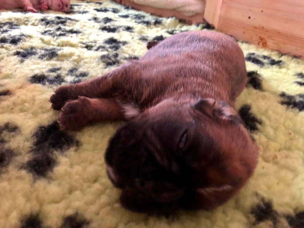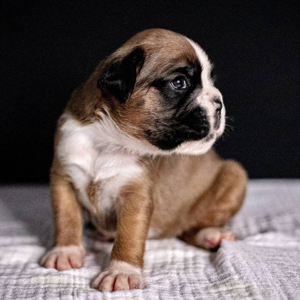 30. September 2019: Heute ist es soweit, vier der fünf Boxerwelpen haben die Augen geöffnet! Unser Welpe „Amboss“ unternimmt die ersten Gehversuche und stellt sich schon ganz gut an. Die Welpen haben nun ein Gewicht von 1000 – 1300 Gramm, sie saufen hervorragend und legen somit die Grundlage für ein gesundes Leben.