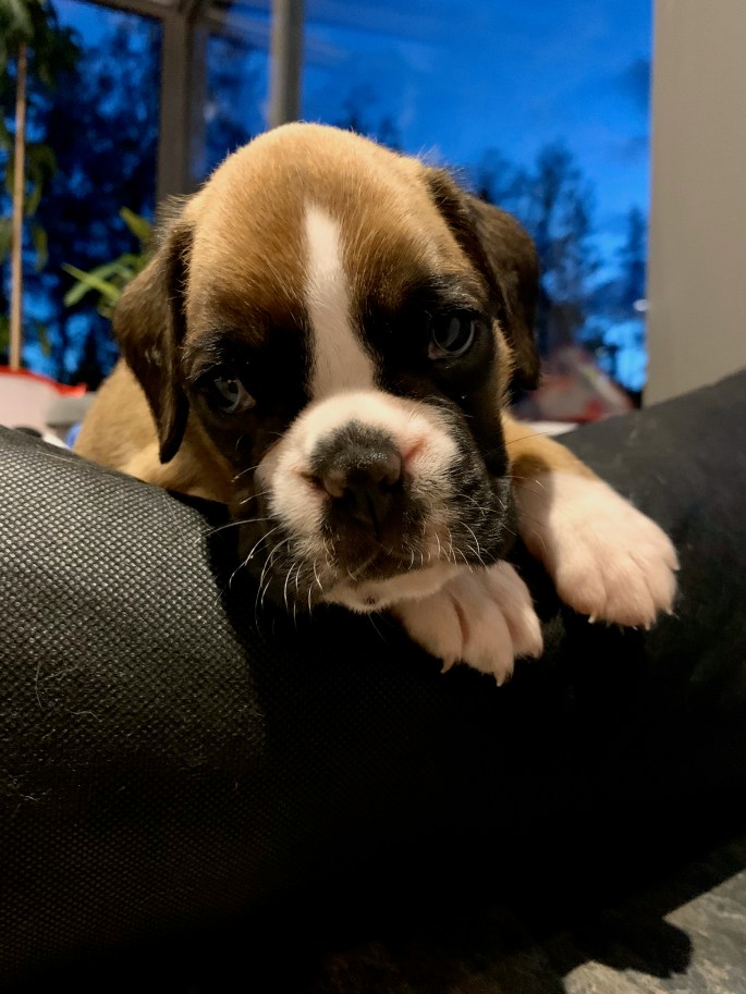 26. November 2019: Nun ist der Tag gekommen, wo wir uns mit einem weinenden und einem lachenden Auge anschauen. Unsere Welpen sind in den letzten Tagen „stiften“ gegangen, dies erfreulicherweise aber nur im positiven Sinne. Vor ein paar Wochen haben die kleinen 300 Gramm Samtschnautzen das Licht der Welt entdeckt, nun sind unsere Boxerwelpen schon sieben Kilo Pakete. Wir freuen uns von Herzen so tolle Familien für die kleinen gefunden zu haben und wünschen Euch VIEL SPASS. WIR WERDEN EUCH VERMISSEN!