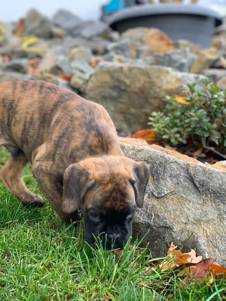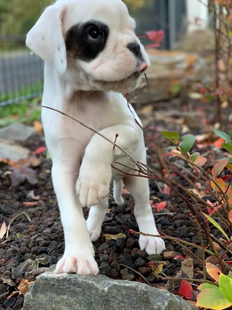 2. November 2019: Der Winter steht kurz vor der Tür, die letzten Herbsttage geniessen wir mit unseren Boxerwelpen im Garten. Die kleinen Boxer sind nun inzwischen sieben Wochen alt, erforschen den Garten – das grüne Gras, die Steine und knabbern die Heidelbeeren ab – spielen mit sich selbst und Mama und Papa. Die Zeit vergeht viel zu schnell!