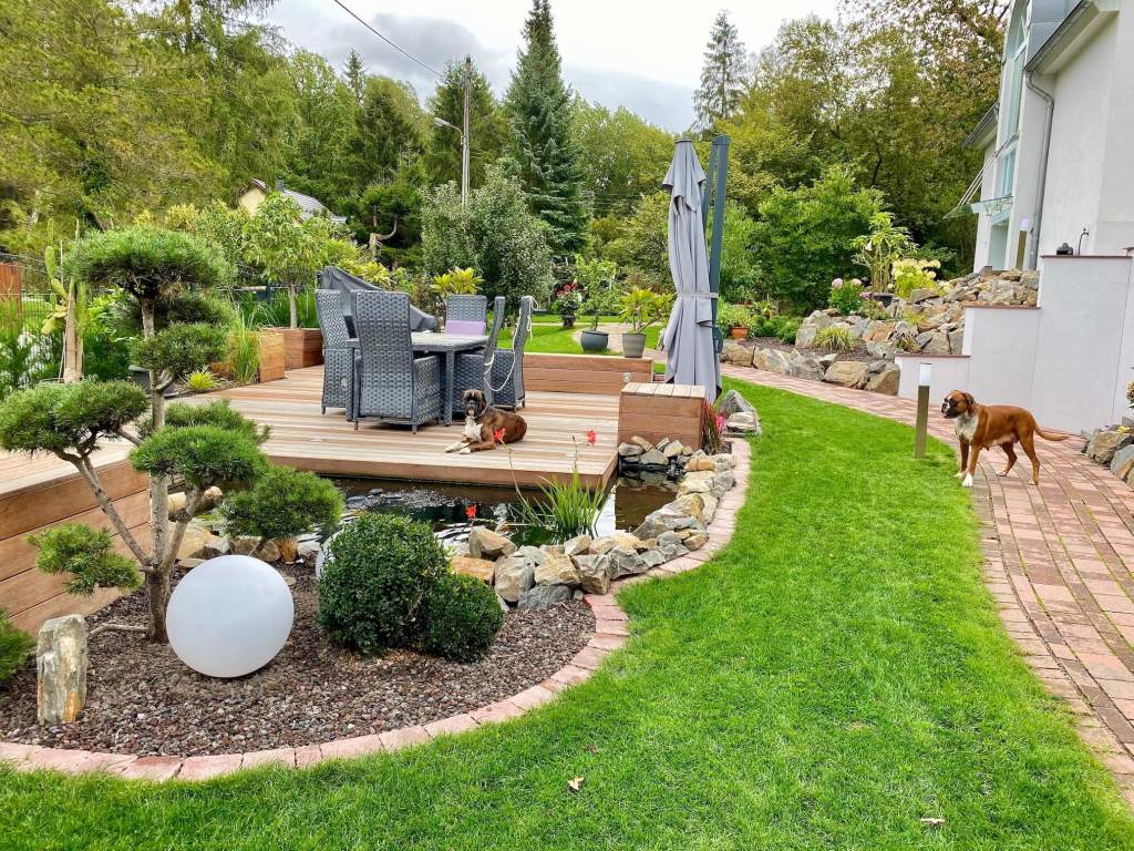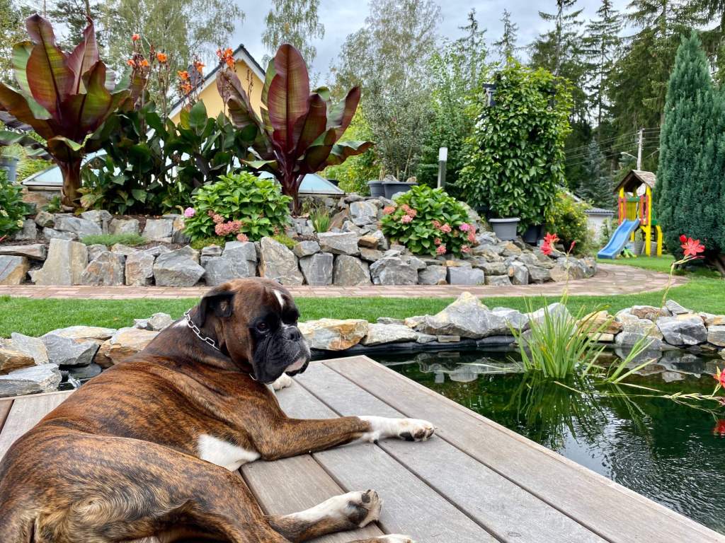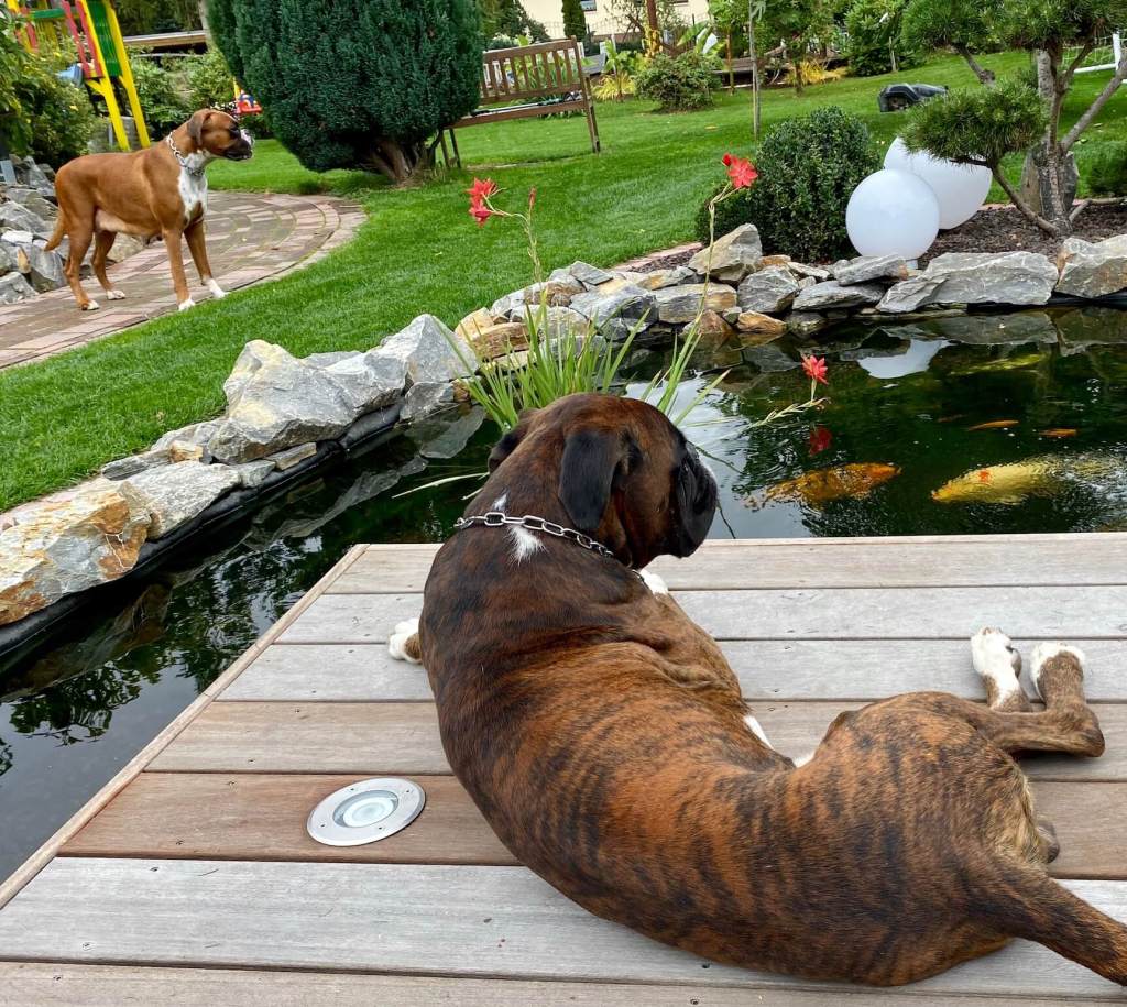 Neulich im Garten – Wir sind gegen iPads und Videospiele, deshalb gibt es Hundekino am Koi Teich!